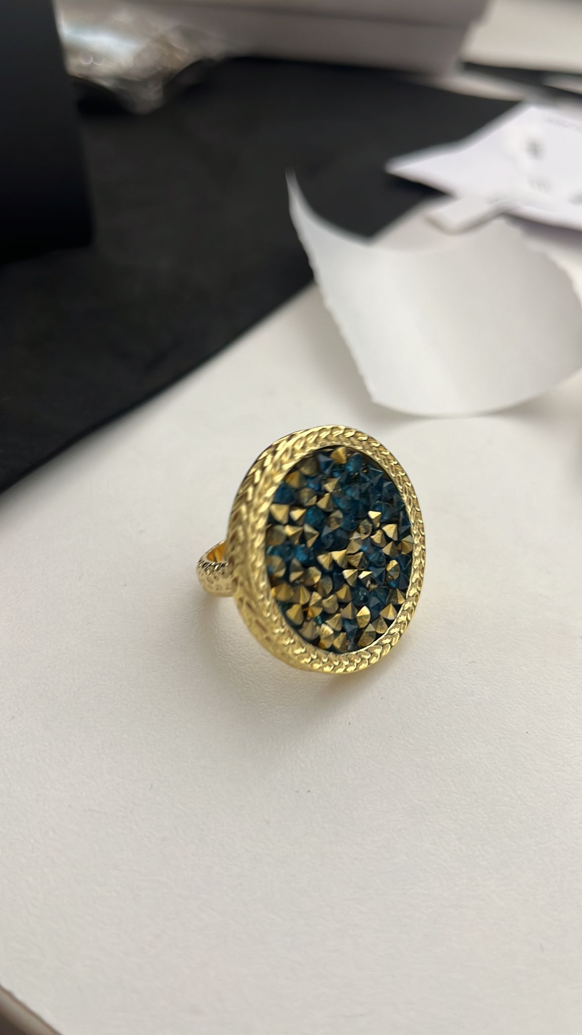 خاتم سوليس دائرة مع احجار ازرق و بني