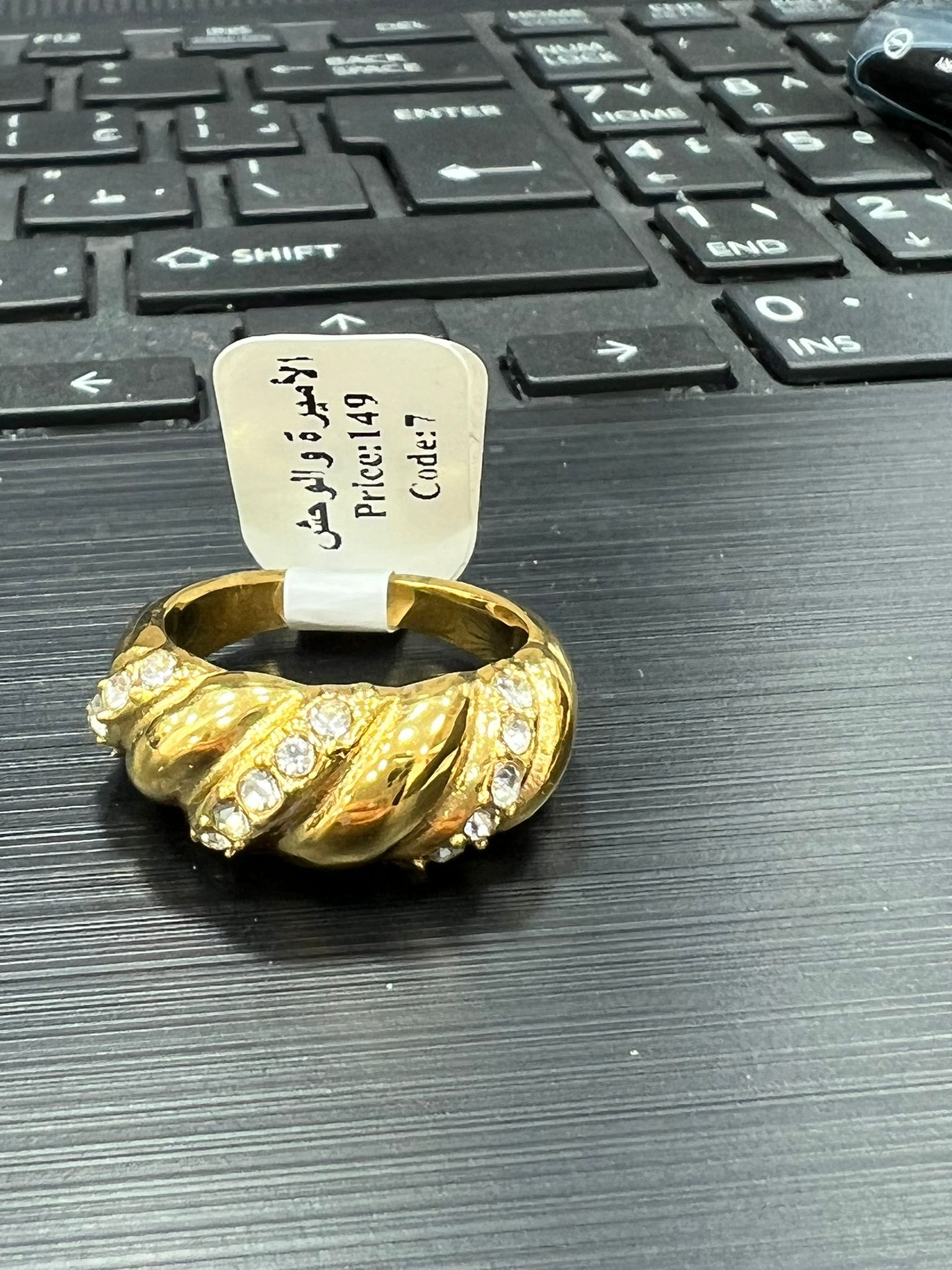 خاتم مطلي ذهب مع خطوط مرصعة بالكرستال-S8